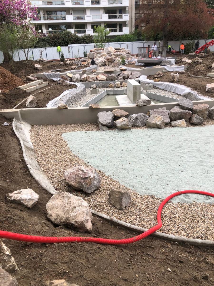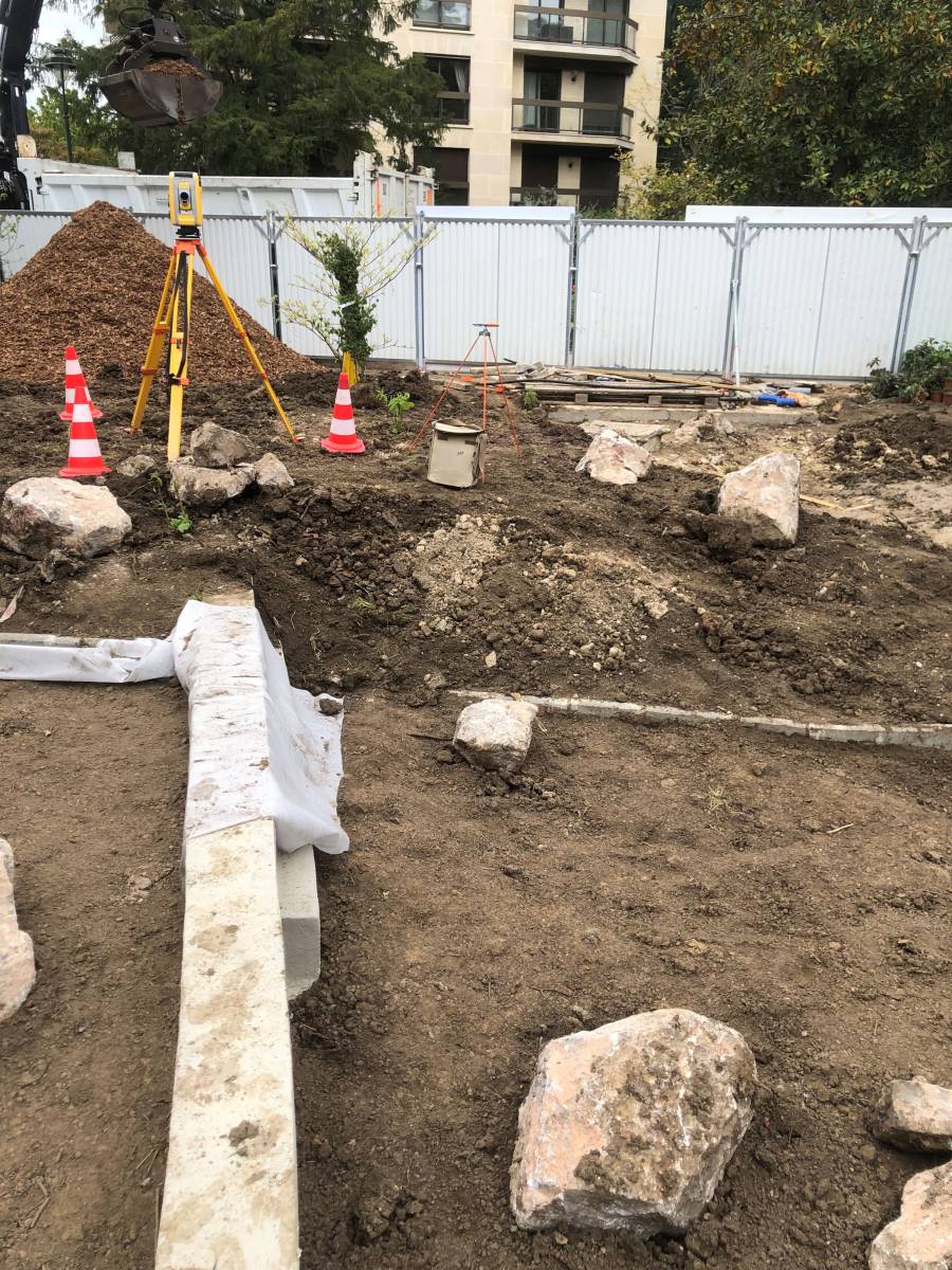 Le cabinet GEO-VISION géomètre a été missionné par une entreprise de travaux publics pour réaliser le plan de récolement des travaux d'un bassin écologique dans un parc de la commune de Levallois-Perret proche de Paris.