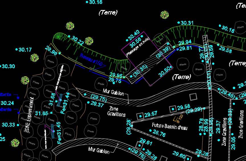 Nos collaborateurs ont alors réalisé un levé topographique du site grâce à une station robotisée et à un GPS, afin de fournir le plan de récolement au format DWG autocad à notre client. Ces plans attestent de la conformité des travaux qu'ils ont réalisés.
